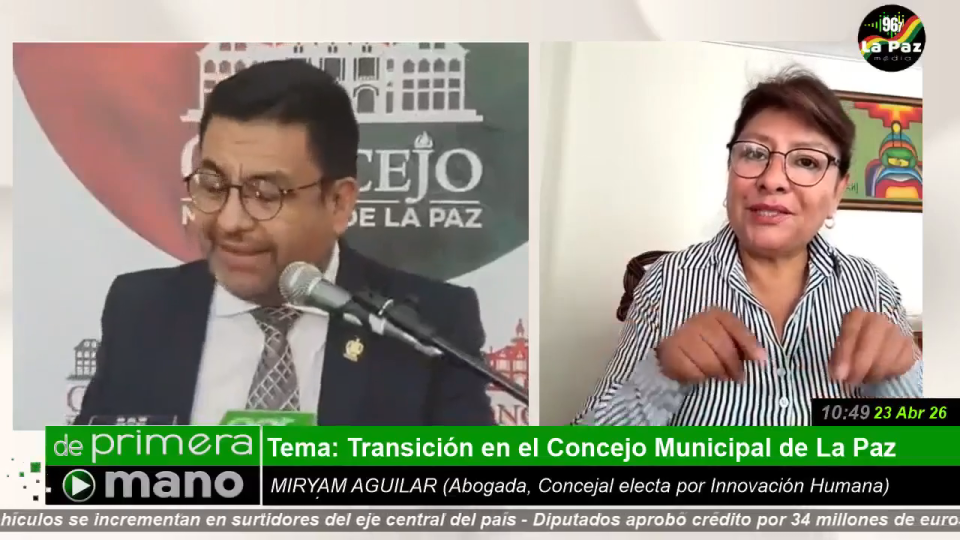 En el Concejo Municipal de La Paz se han encendido alertas por el manejo de la etapa de transición y las decisiones adoptadas en la recta final de la gestión saliente, según declaraciones de la concejal electa por Innovación Humana, Miryam Aguilar, en entrevista con el programa “De Primera Mano” de Radio FM La Paz Media 96.7.