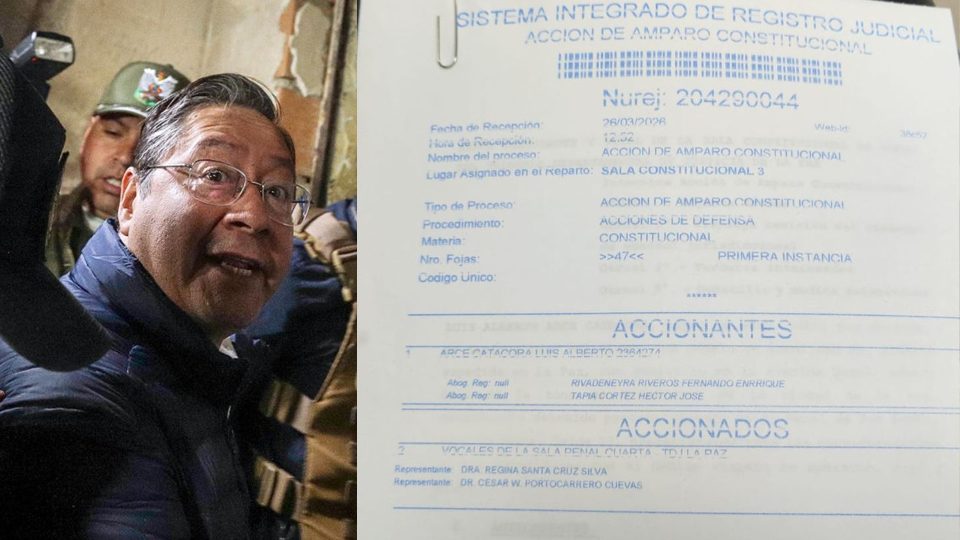 La defensa técnica del presidente Luis Alberto Arce Catacora formalizó una Acción de Amparo Constitucional contra los vocales de la Sala Penal Cuarta de La Paz, Regina Santa Cruz y César Portocarrero, en respuesta a la resolución que dispuso su detención preventiva, calificada por su equipo legal como “arbitraria e indebida”.