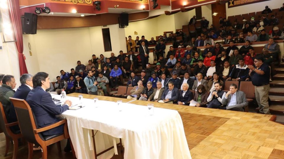 Por disposición del presidente Rodrigo Paz, este mediodía comenzó un encuentro entre autoridades del Gobierno y dirigentes del transporte urbano en el Ministerio de Economía. Participan los ministros de Gobierno, Obras Públicas, Hidrocarburos y Economía, con el objetivo de dialogar sobre la suspensión de los bloqueos y la normalización del servicio en ambas ciudades.